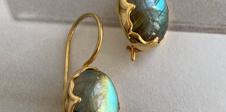 Forgyldte ørering med labradorit